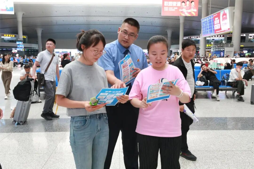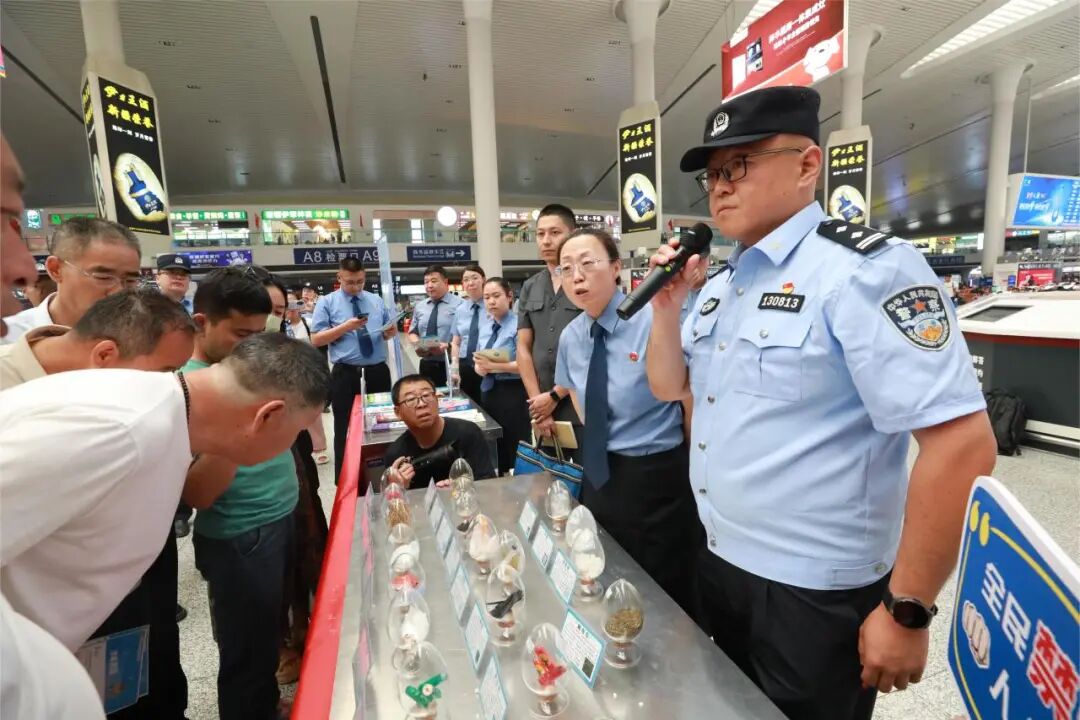 在活动现场,检察人员设置宣传点,通过派发宣传手册、禁毒漫画书、张贴禁毒海报、摆放毒品样品、有奖互动问答等方式,面对面向候车大厅的旅客讲解毒品的社会危害性,提醒大家一定要远离毒品,发现有吸食、贩卖毒品的者一定要及时报警。检察人员围绕典型涉毒违法案例,揭露毒品对个人、家庭、社会造成的严重危害。